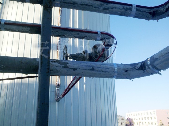 我司自限溫電熱帶用于錦洋化工液罐管道電伴熱防凍