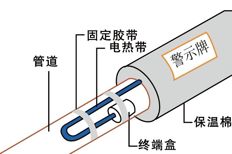 在以上電伴熱系統(tǒng)安裝調(diào)試完畢后,需做外保溫層,請(qǐng)選擇阻燃防火型的外保溫層,在保溫層外加警示標(biāo)簽注明“內(nèi)有電熱帶”更需注明所有配件的位置.,以便于今后電熱帶接線方式的檢查和維護(hù)。